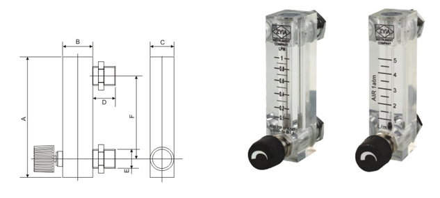 | ml/min(液體) | L/min(氣體) | A | B | C | D | E | F | |||
